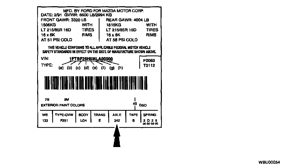 Rear Axle Identification Tag: