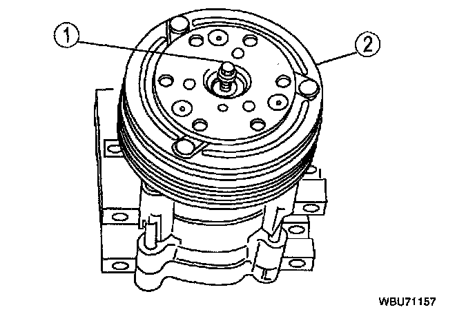 1. Thread an 8 x 1.25 mm bolt into the A/C clutch to force it from the compressor shaft.