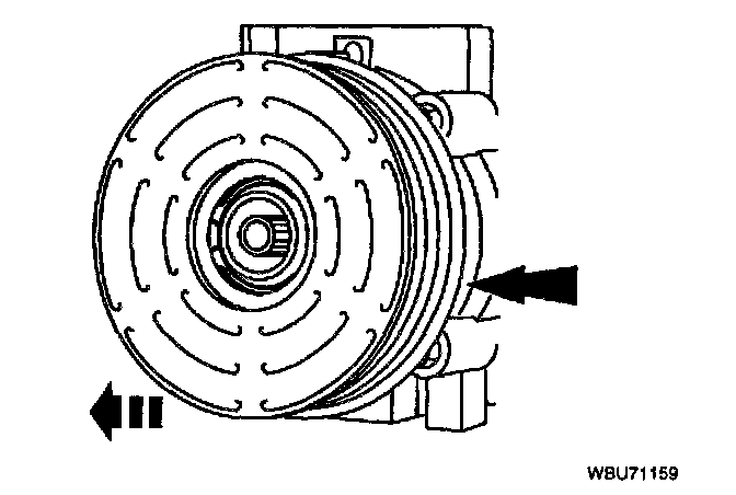 CAUTION: Do not use air tools. The A/C clutch field coil can be easily damaged.
