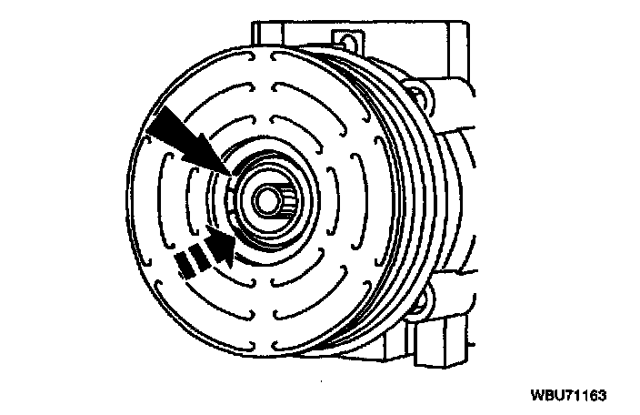 1. Clean the A/C clutch field coil and pulley bearing mounting surfaces