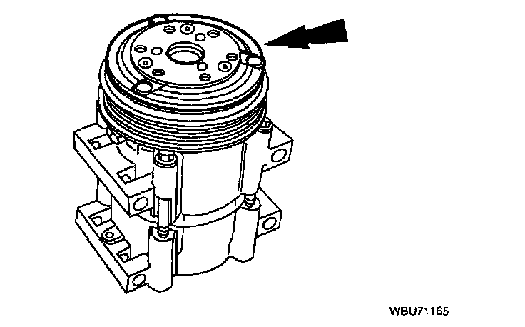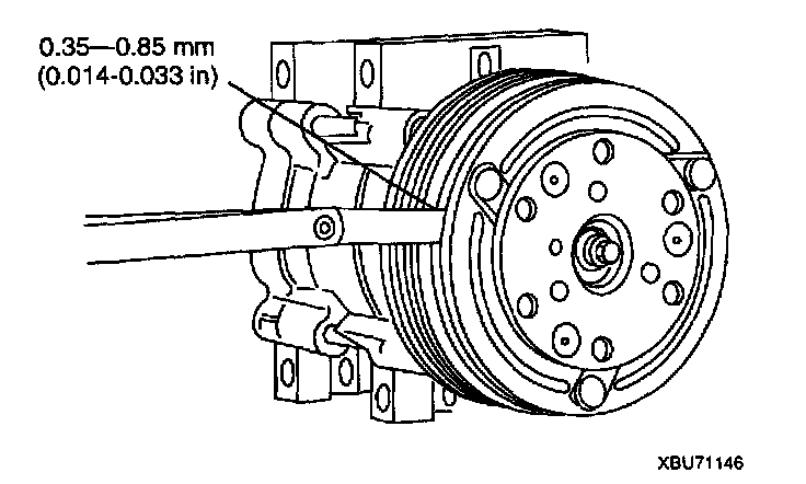 8. Measure and adjust the clutch air gap by removing or adding A/C clutch hub spacers.