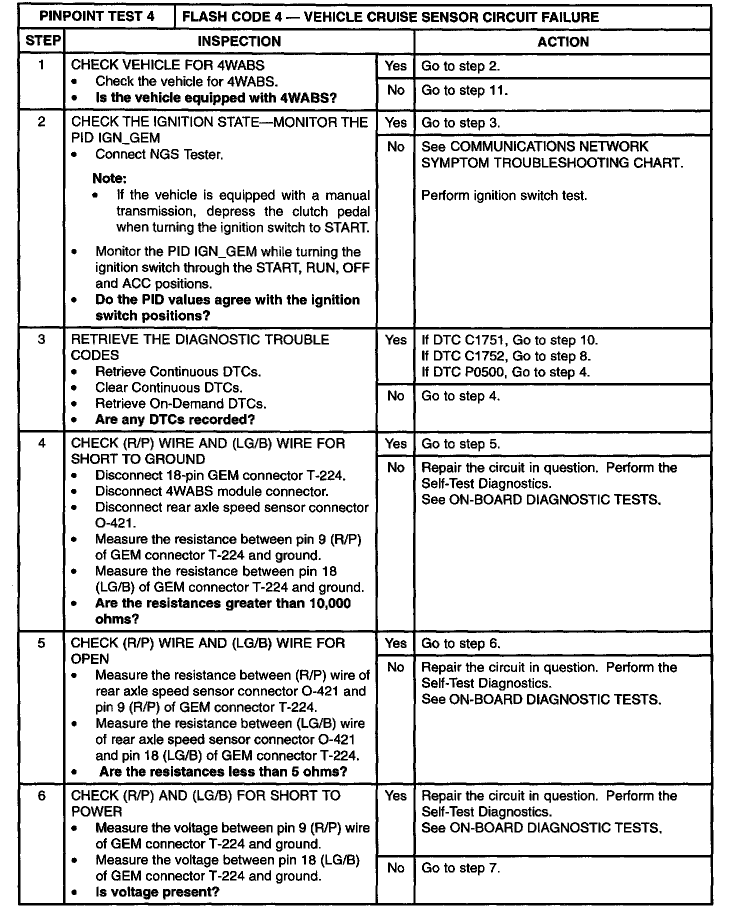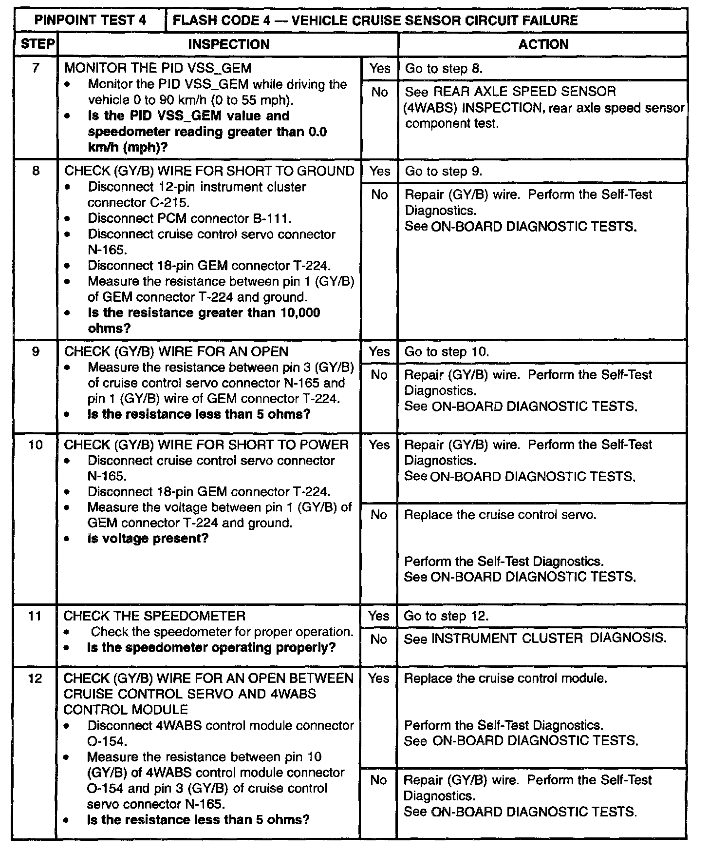 4: Flash Code 4 - Vehicle Cruise Sensor Circuit Failure