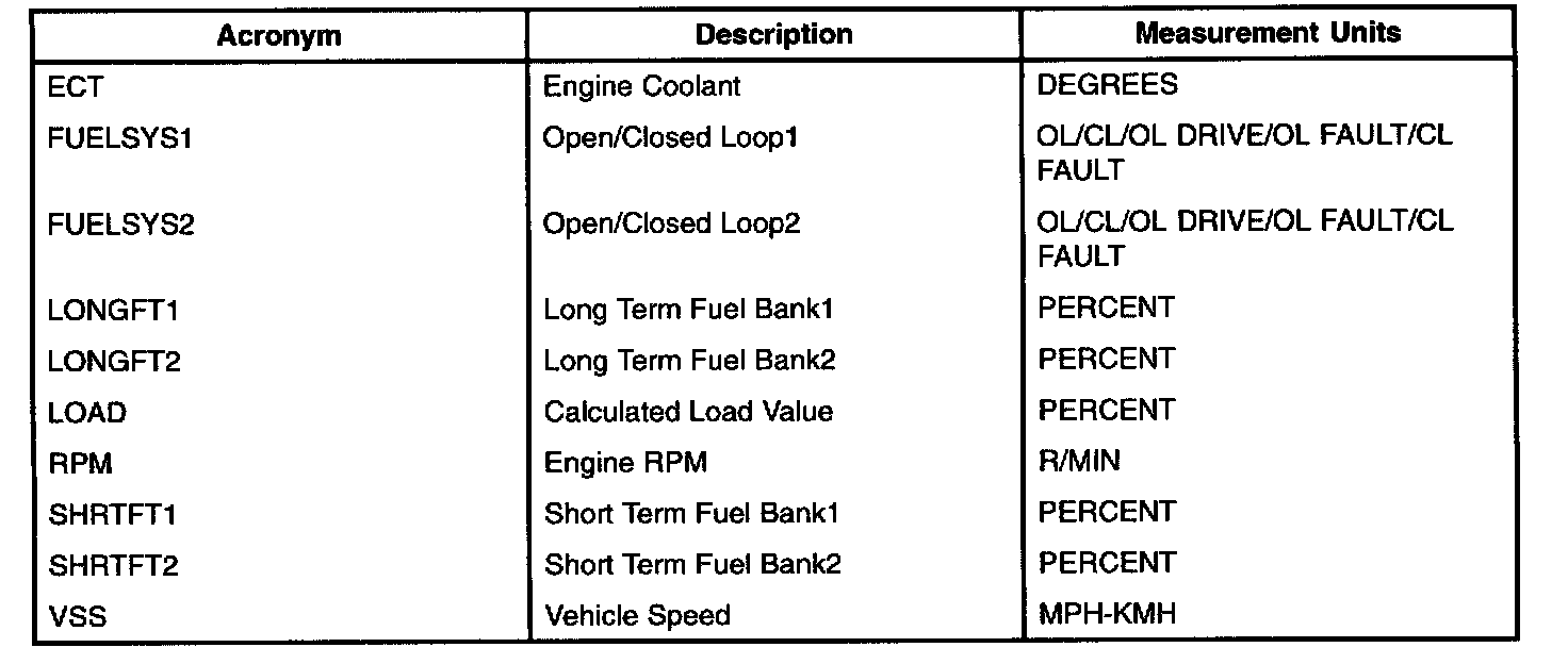 Freeze Frame Data Table