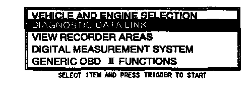 7. Move the cursor to DIAGNOSTIC DATA LINK in the main menu screen. Press the trigger key to enter into menu system diagnostics.