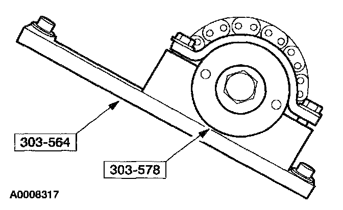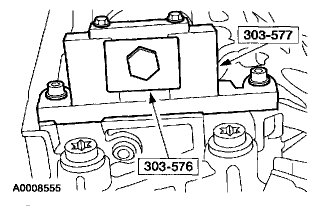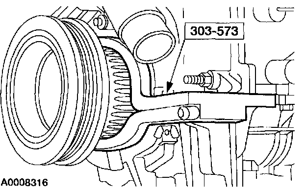 8. NOTE: The special tool must be installed on the damper and should contact the engine block, this positions the engine at Top Dead Center (TDC).