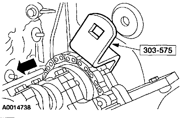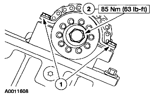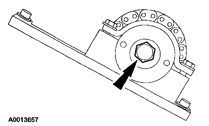 9. CAUTION: The right-hand camshaft sprocket bolt is a left-hand threaded bolt.