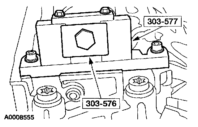 27. Install the special tools on the front of the LH cylinder head and tighten the top two clamp bolts to 10 Nm (89 inch lbs.).