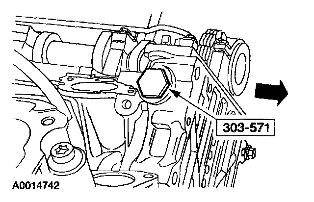 Using the special tool, loosen the RH camshaft sprocket bolt.