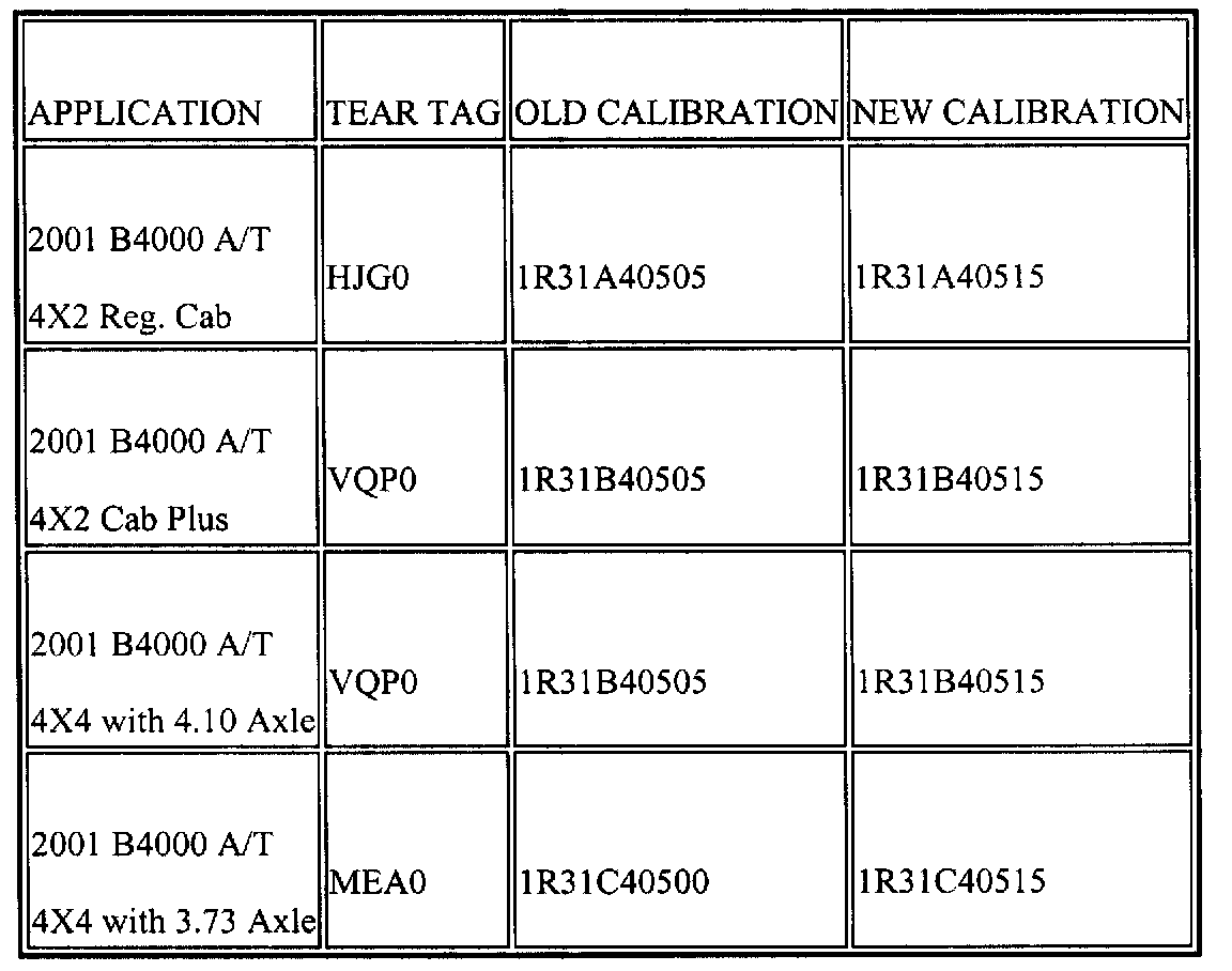 All 2001 B4000 with automatic transmission built prior to 11/27/00.