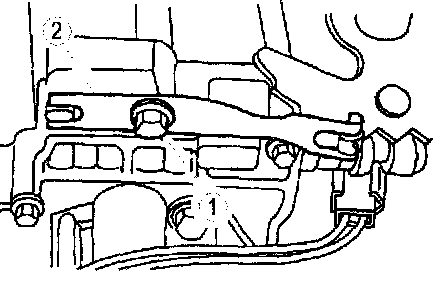 8. Remove the detent bolt (1) and spring (2).