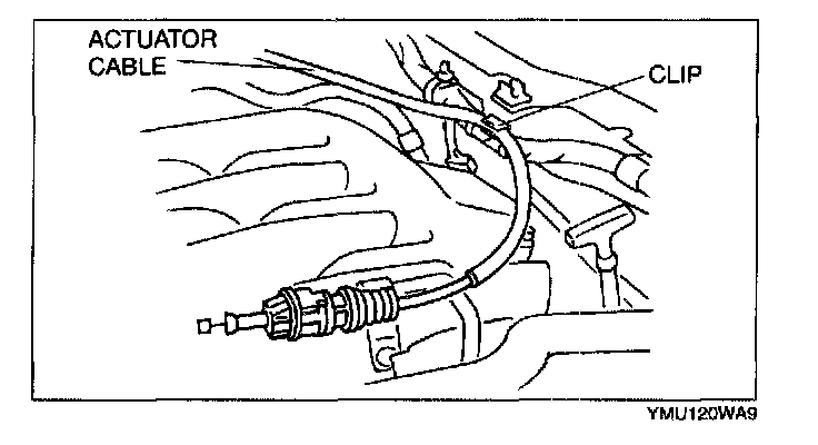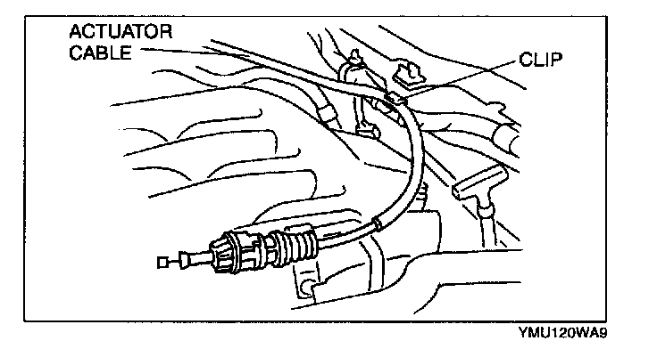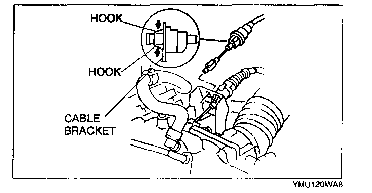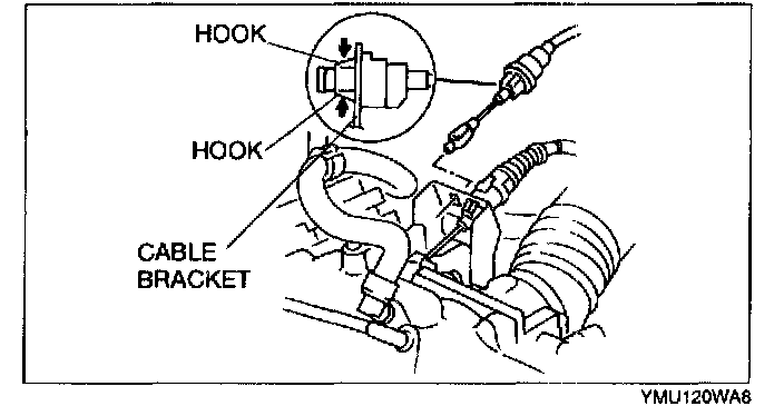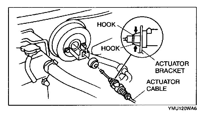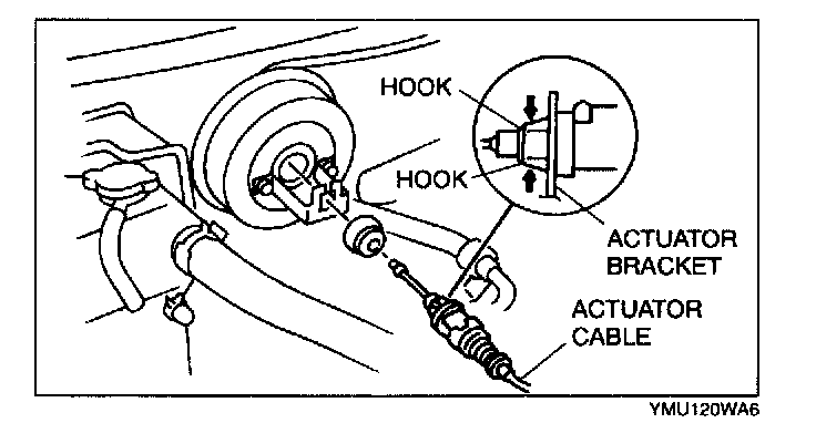 ACTUATOR CABLE REMOVAL1. Squeeze the hooks of the grommet, and remove the actuator cable.