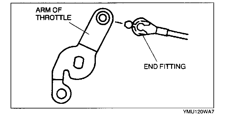 2. Remove the end fitting of the actuator cable from the arm of the throttle.