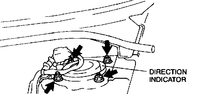 ^ In case of adjusting to + (positive) side, install the adjusting bolt and washer so that the projection of the washer faces inside (shock absorber side) as shown.