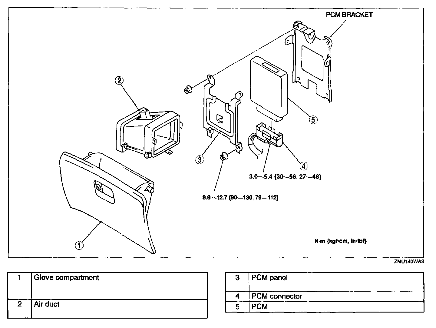 4. Remove tour installation nuts, then pull the PCM panel down to remove from installation place.