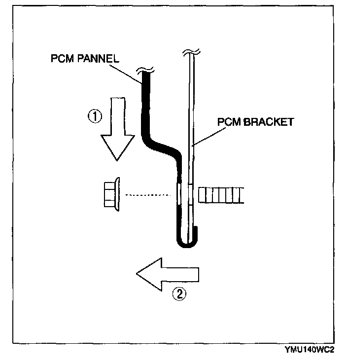 1. Before removing the PCM panel, pull the PCM connector harness stay fastener out from the PCM panel.