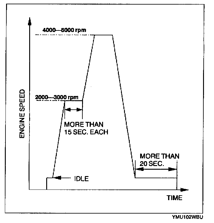 3. Perform no load racing at the engine speed shown in the graph, then idle the engine for more than 20 seconds after the cooling fan stopped. If possible, monitor RPM PID for engine speed and FAN3 PID for cooling fan status during this procedure.