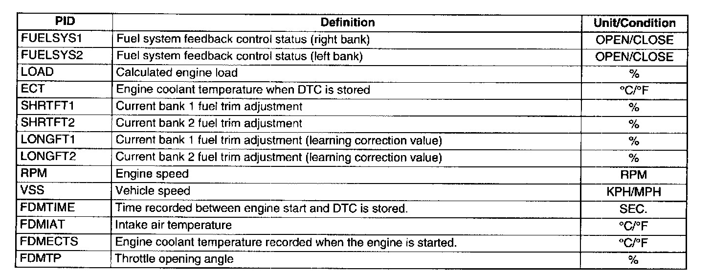 - FFD is a snapshot of the conditions that are present when DTC or PENDING CODE is stored. Once FFD is stored, this data will remain in PCM memory even if another emission related DTC or PENDING CODE is stored additionally, except for Misfire or Fuel System related DTC or PENDING CODE. Once Misfire or Fuel System related DTC or PENDING CODE is stored, it will overwrite any previous data and the FFD will not be further overwritten. When DTC associated with the FFD is erased or PCM is reset, new FFD can be stored.