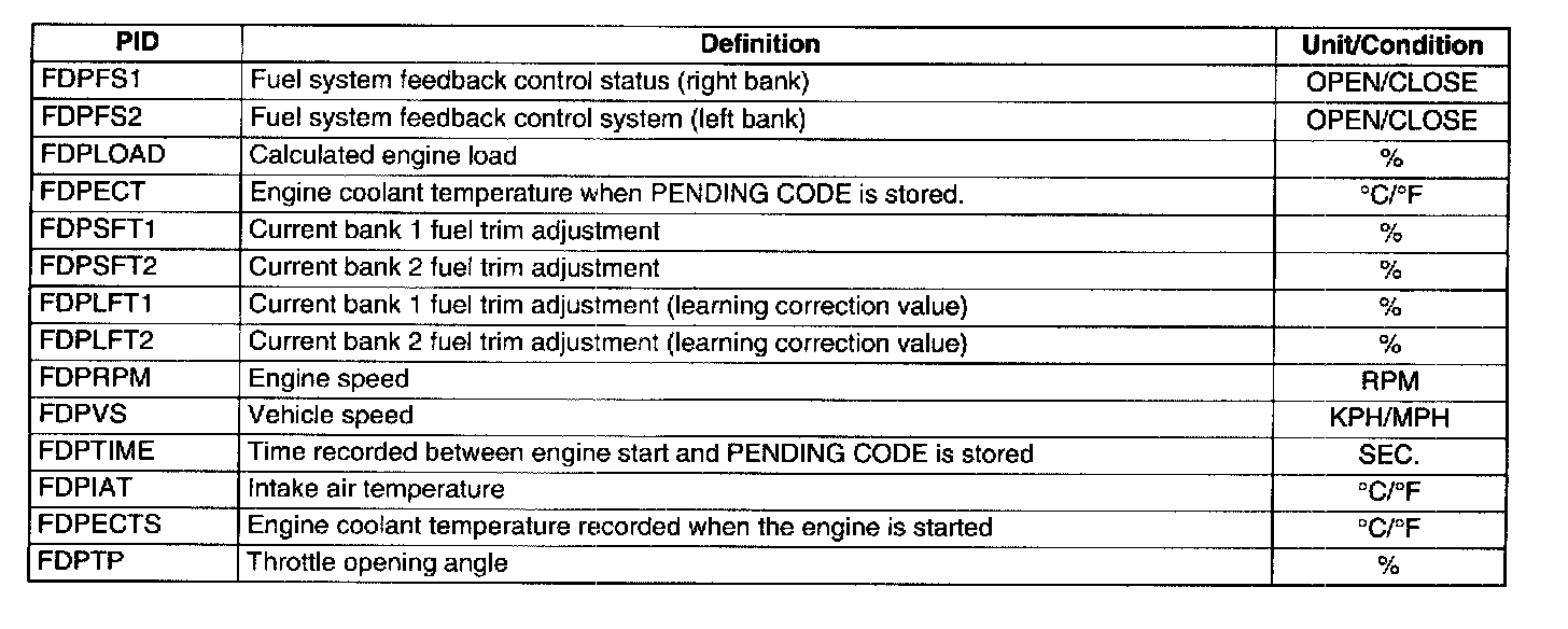 - Retrieve the following FFD from GENERIC OBD II FUNCTIONS, excluding FDMTIME, FDMIAT, FDMECTS and FDMTP. Retrieve the FFD for FDMTIME, FDMIAT, FDMECTS and FDMTP from PID/DATA MONITOR & RECORD in DIAGNOSTIC DATA LINK.