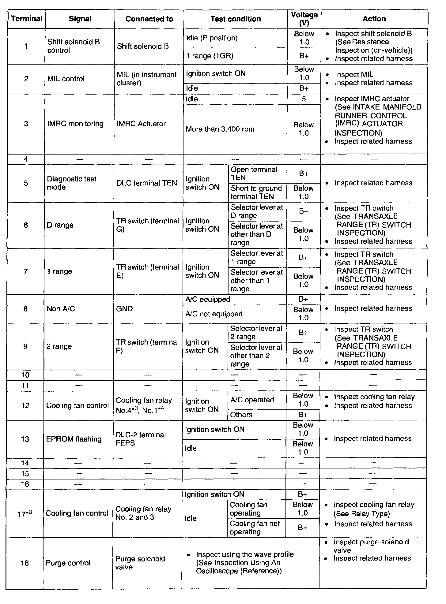 Terminal Voltage Table (Reference)Terminal Voltage Table (Reference) - Terminal 1 - 18: