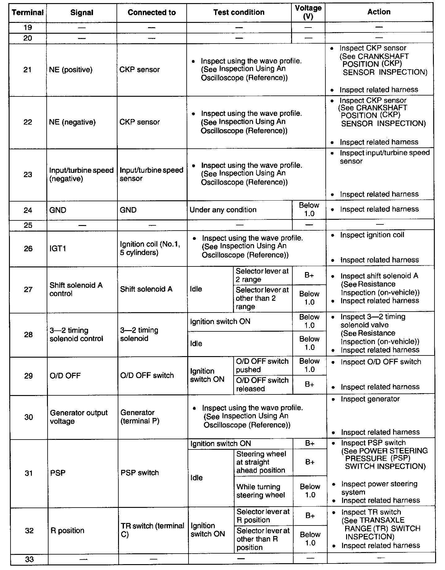 Terminal Voltage Table (Reference) - Terminal 19 - 33: