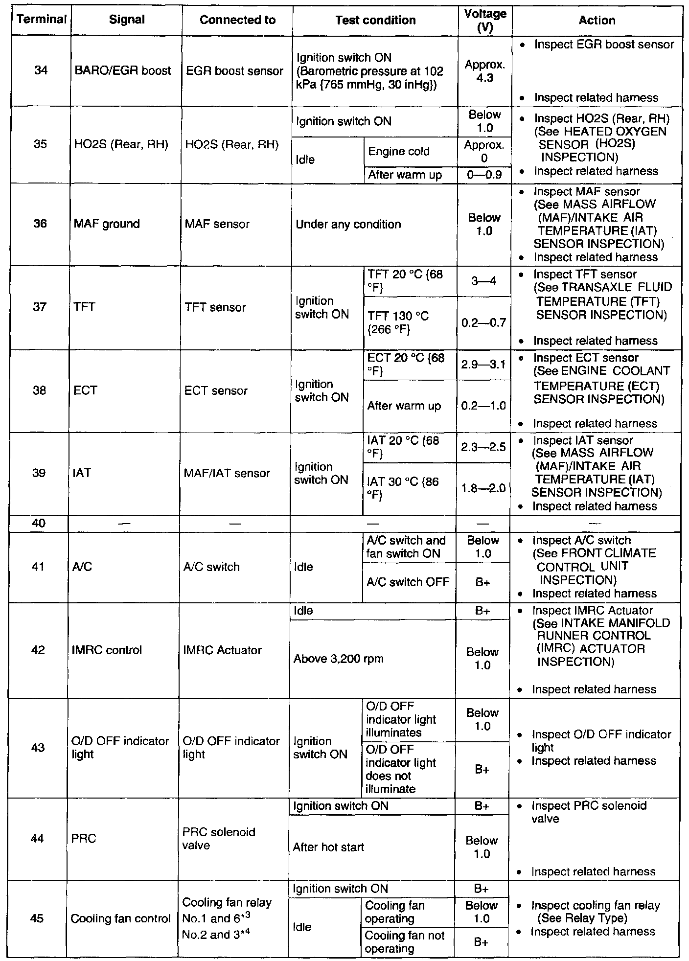 Terminal Voltage Table (Reference) - Terminal 34 - 45: