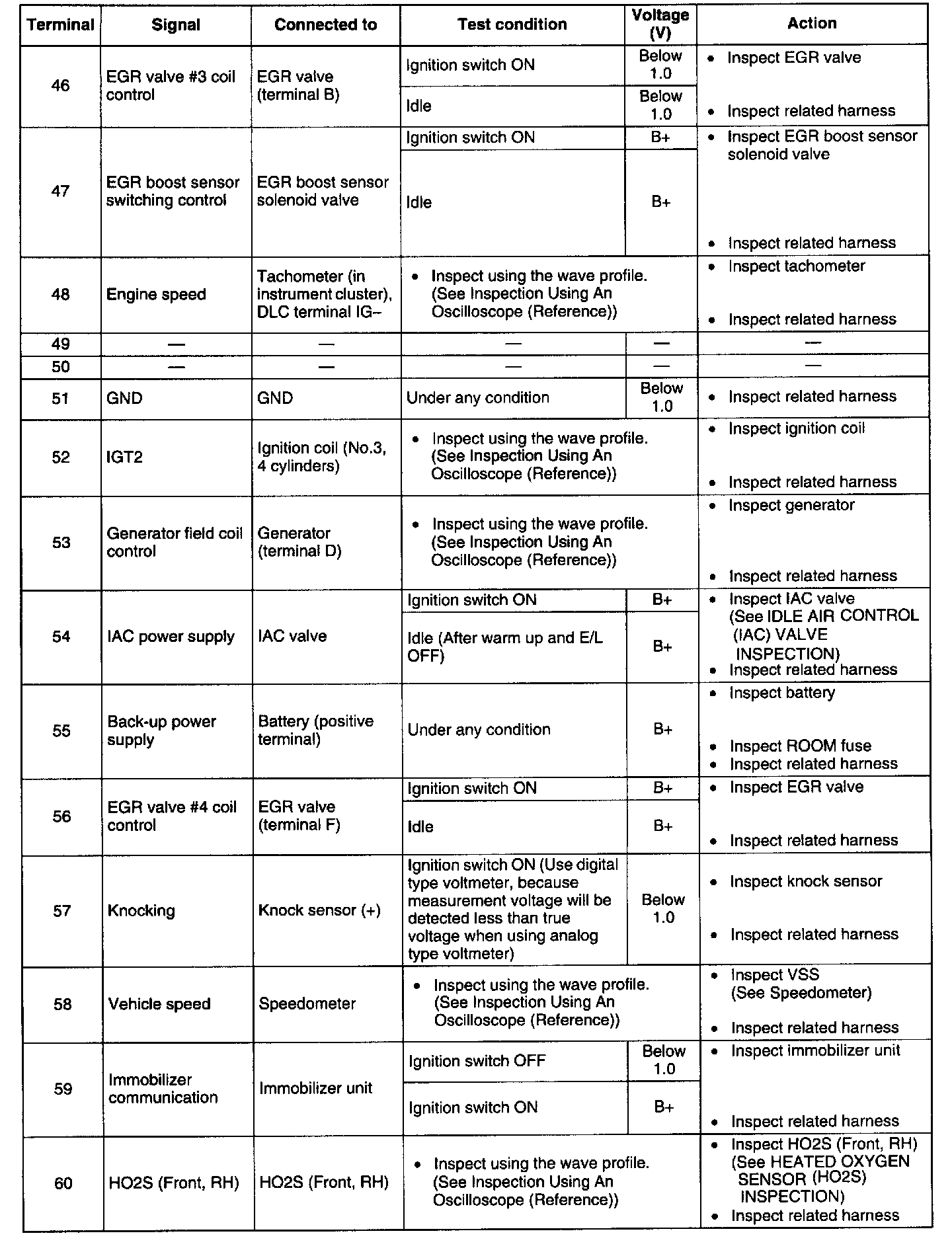 Terminal Voltage Table (Reference) - Terminal 46 - 60: