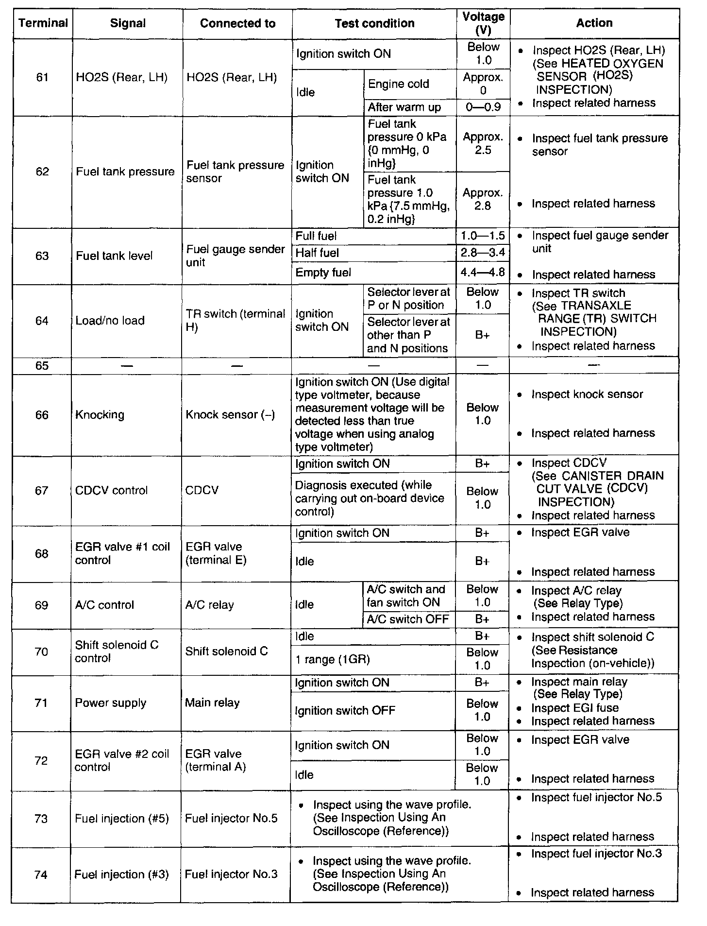 Terminal Voltage Table (Reference) - Terminal 61 - 74: