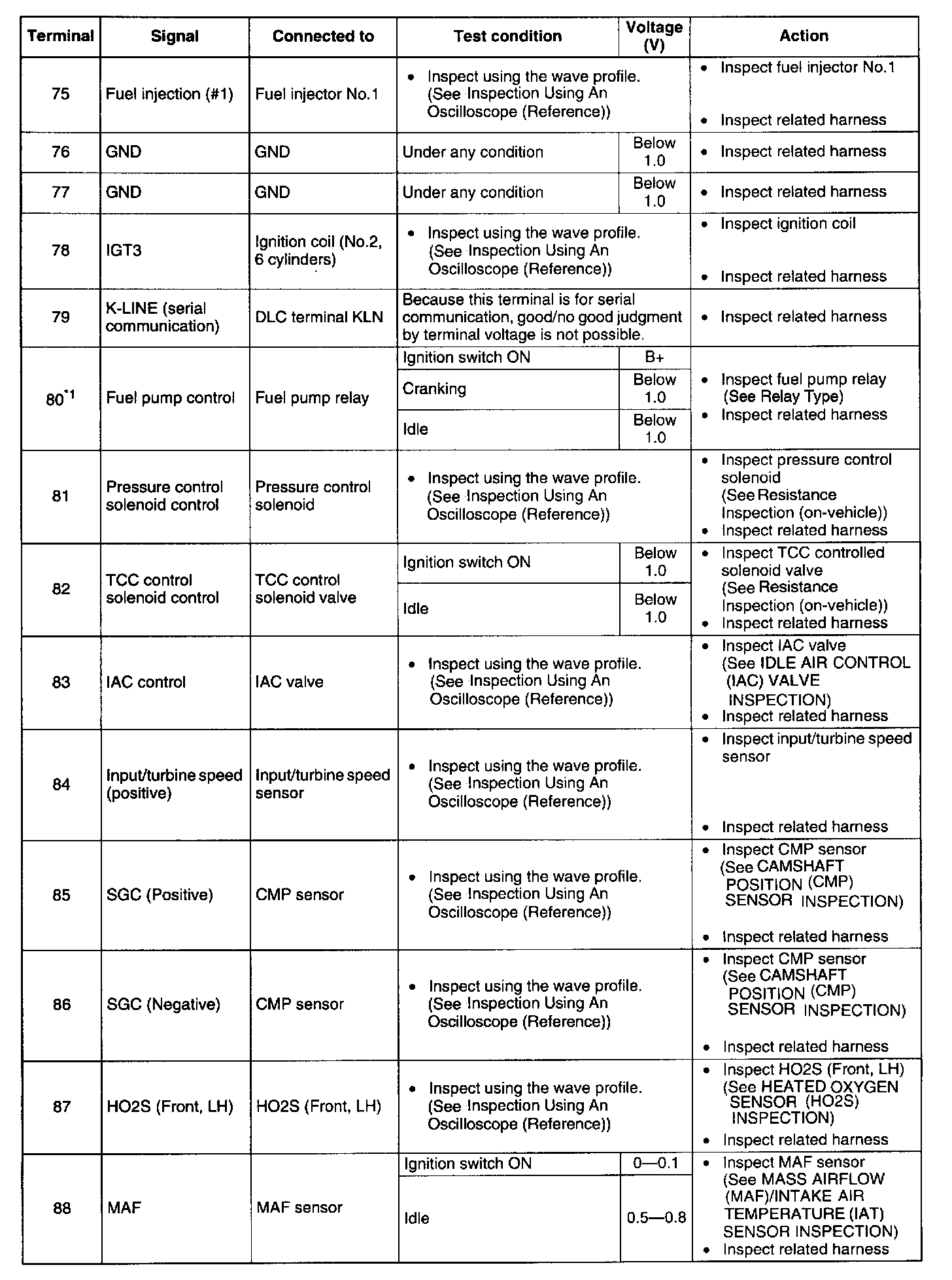 Terminal Voltage Table (Reference) - Terminal 75 - 88:
