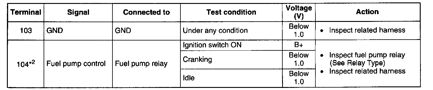 Terminal Voltage Table (Reference) - Terminal 103 - 104: