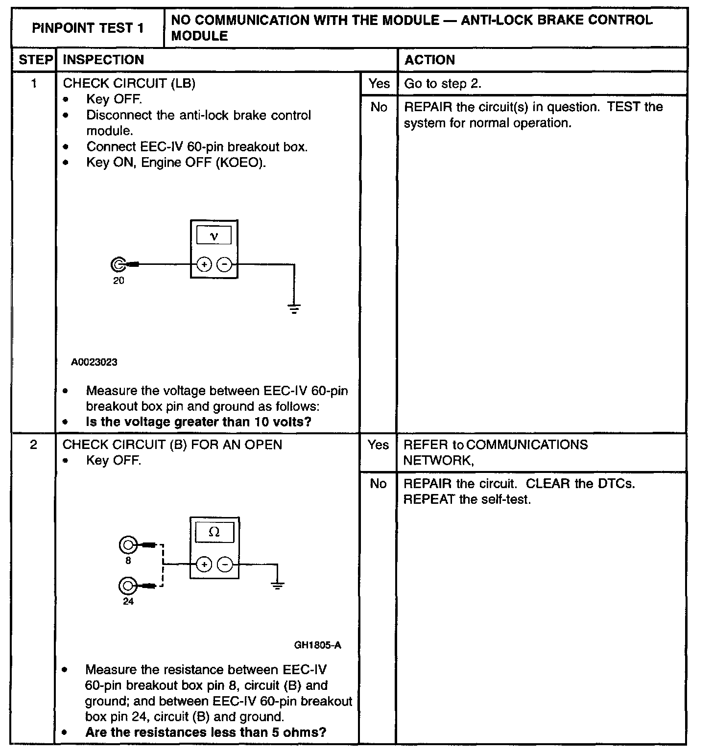Pinpoint Test 1 - No COMM With the ABS Control Module
