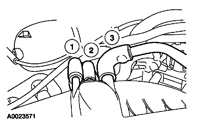 7. Disconnect the three vacuum hoses on the back of the intake manifold.