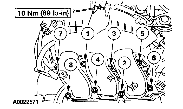 2. Position the upper intake manifold and tighten the bolts in the sequence shown.