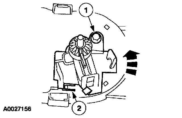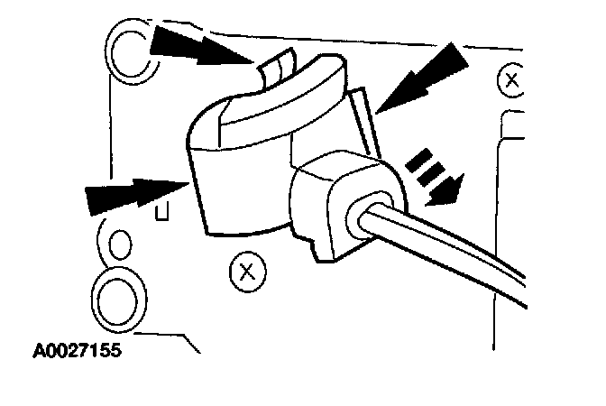 3. Depress the three tabs and remove the temperature blend door control cable.