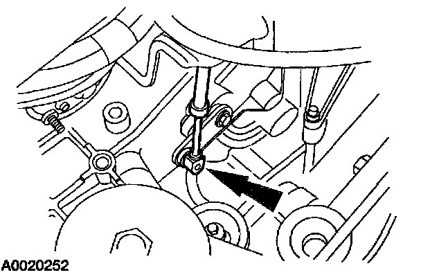 5. Loosen the nut on the ball stud for the manual valve detent lever actuating rod assembly.