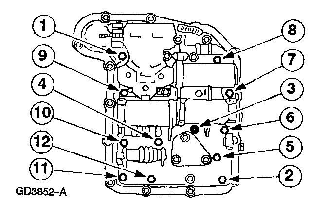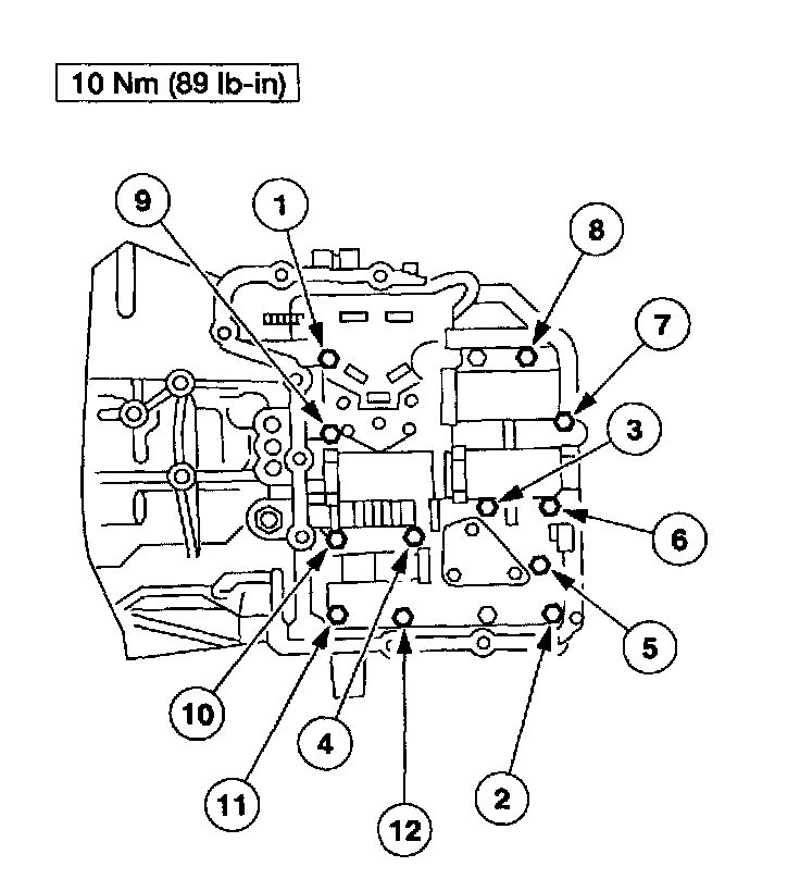4. Install the main control valve body and tighten the bolts in sequence as indicated.