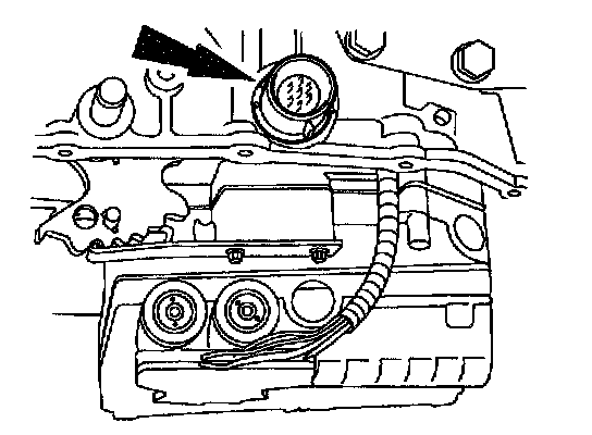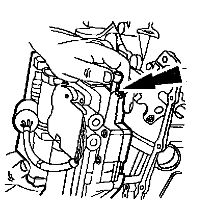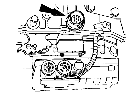 16. Depress the retaining tabs and push the solenoid valve body electrical connector down through the transaxle case.