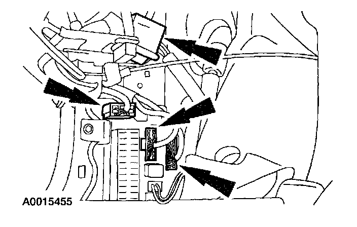 CAUTION: Electronic modules are sensitive to static electrical charges. If exposed to these charges, damage may result.1. Remove the driver-side air bag module.
