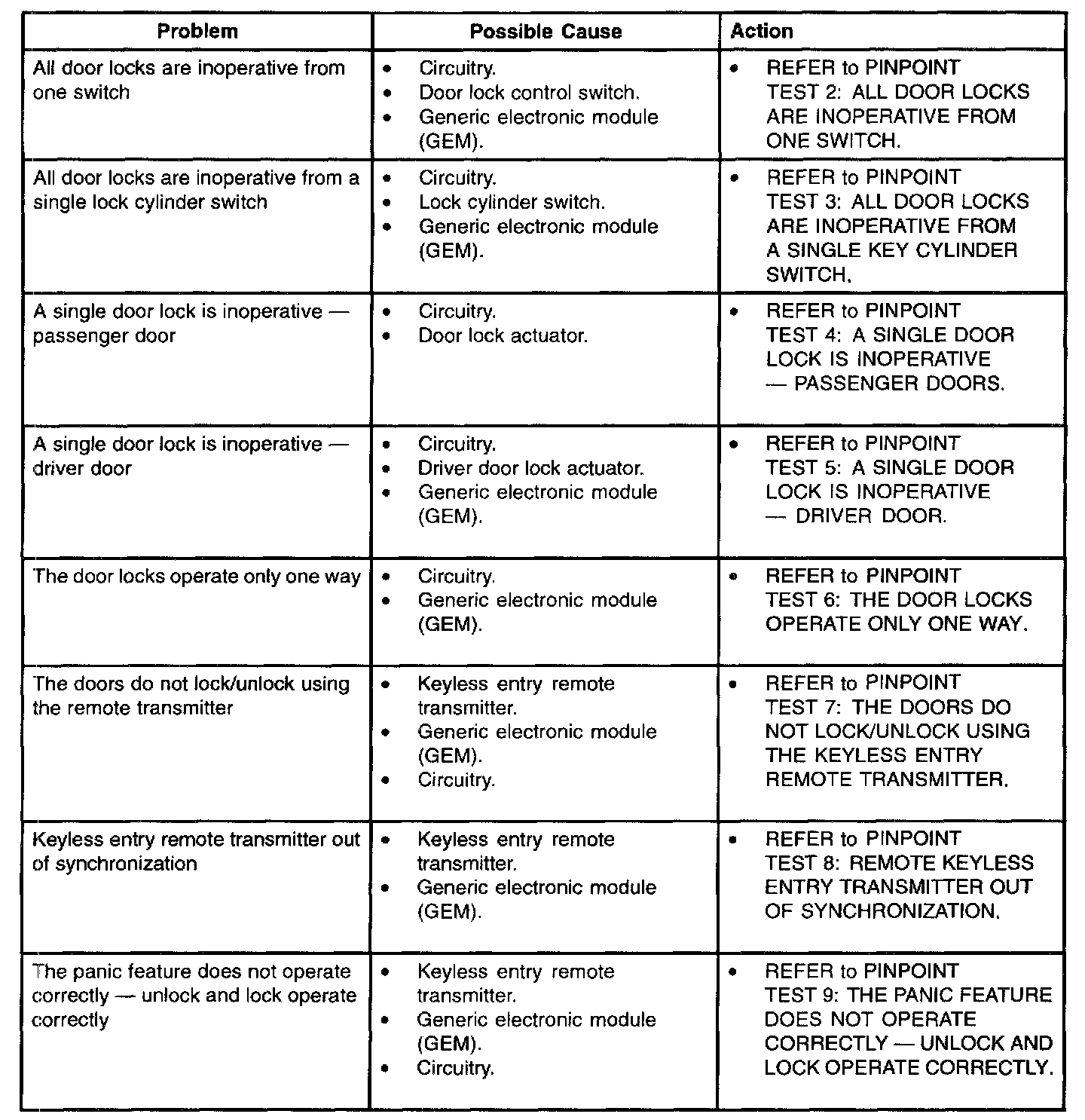 TROUBLESHOOTING INDEX - POWER DOOR LOCKS/KEYLESS ENTRY REMOTE TRANSMITTER (Part 1):