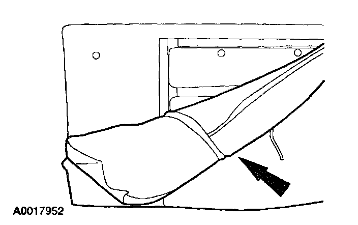 1. Remove the rear seat backrest. For additional information, see REAR SEAT BACKREST - SPLIT BENCH or REAR SEAT BACKREST BENCH.