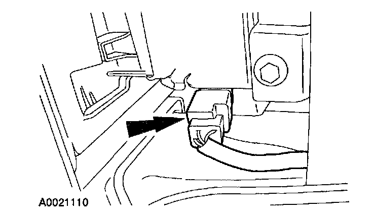 7. Disconnect the driver seat safety belt pretensioner electrical connector.