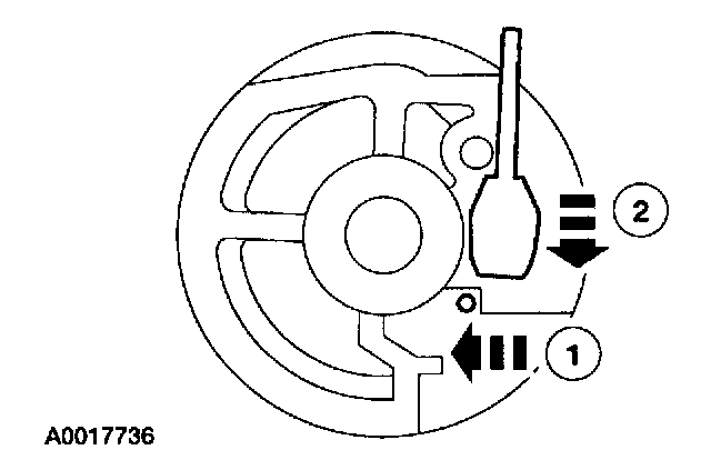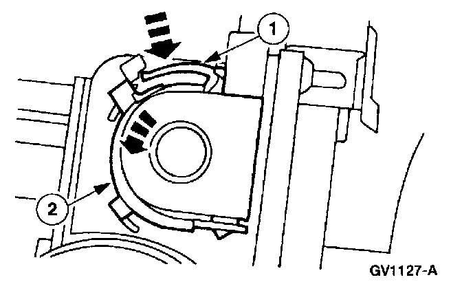 1. Depress the cruise control cable cap retaining tab.