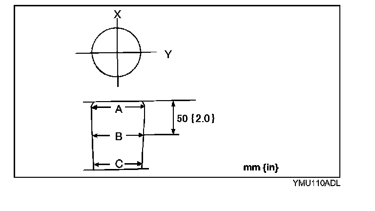 2. Measure the cylinder bores in X and Y directions at 50 mm (2.0 in) below the top surface.