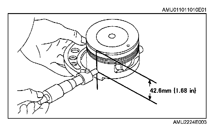 PISTON INSPECTION1. Measure the outer diameter of each piston at right angle 90° to the piston pin, 42.6 mm (1.68 in) below the top of the piston.