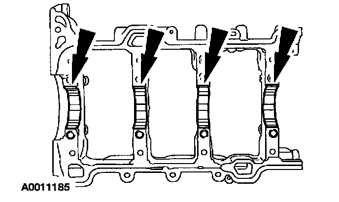 8. Apply Silicone Gasket and Sealant to the cylinder block as shown.