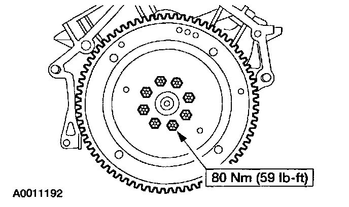 14. Position the flexplate and install the bolts.