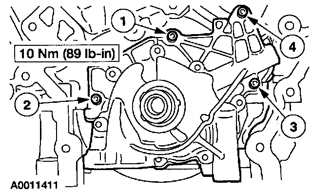 19. Position the oil pump and install the bolts in the in dedicated sequence.
