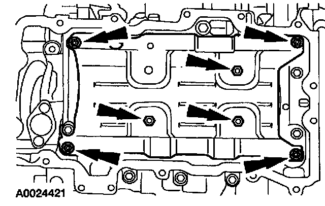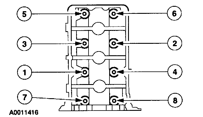 30. Position the RH camshaft caps and install the bolts in the sequence shown.