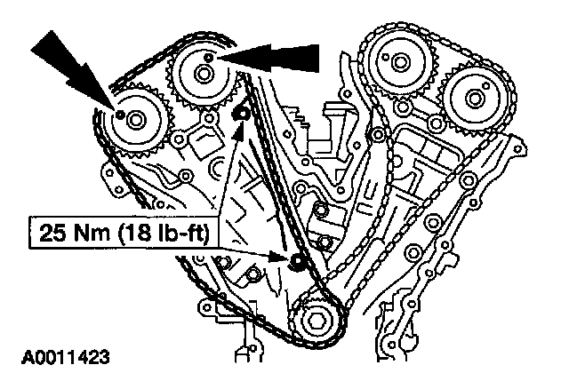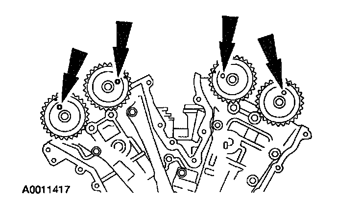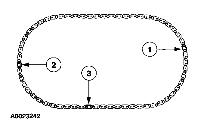 37. If timing marks in the timing chains are not evident, use a permanent-type marker to mark the crankshaft and camshaft timing marks on the LH and RH timing chains.