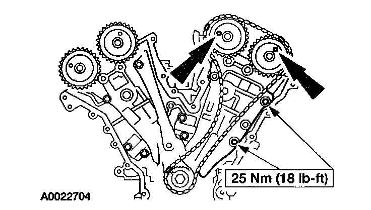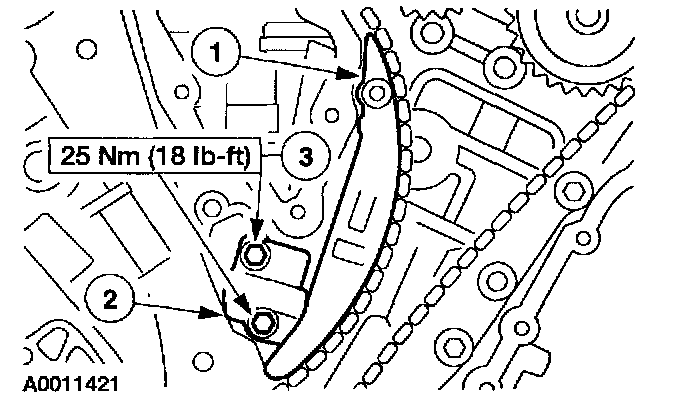42. Position the RH timing chain and chain guide and install the bolts.