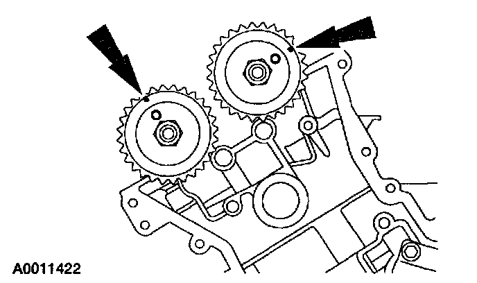 1. Align the marks on the timing chain with the marks on the camshaft and crankshaft sprockets.
